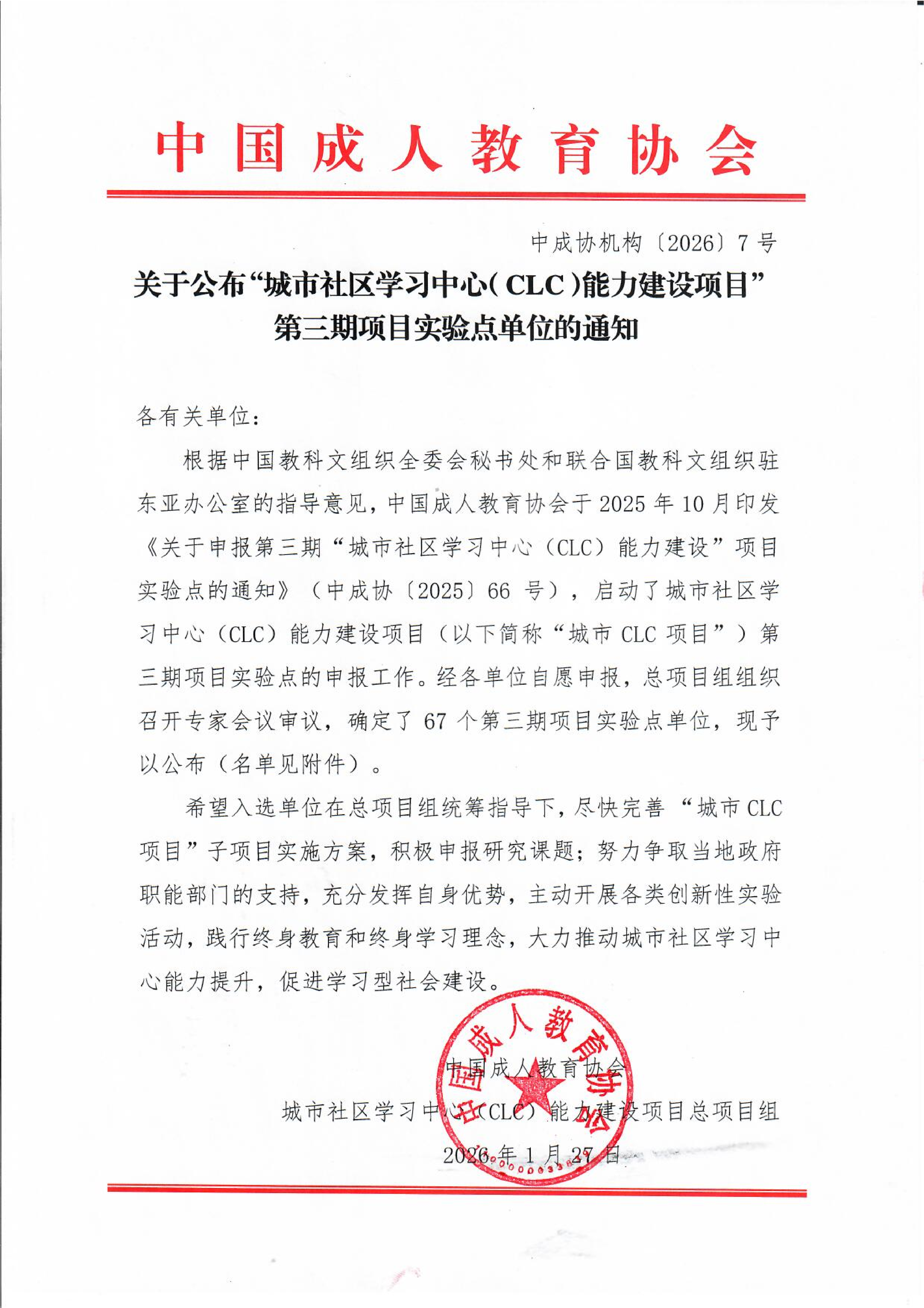 我校入选“城市社区学习中心 (CLC)能力建设”项目实验点单位