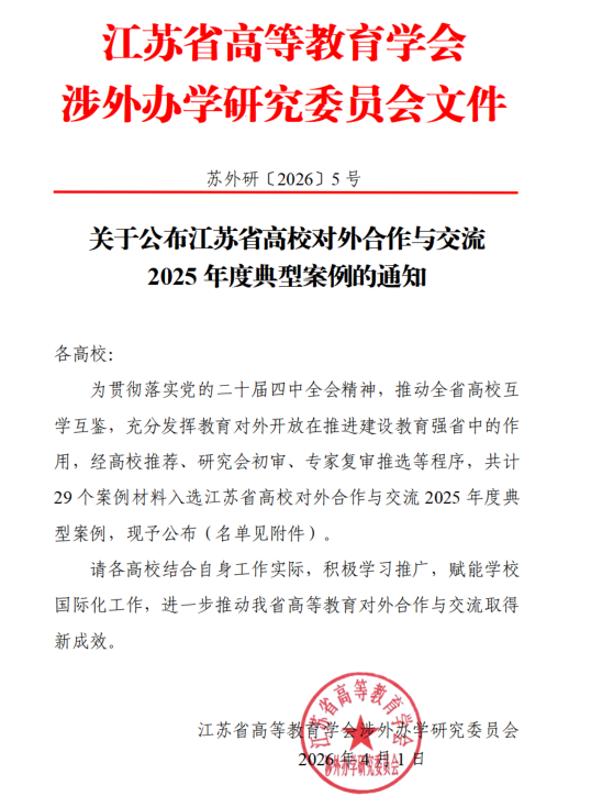 3. 我校案例入选江苏省高校对外合作与交流2025年度典型案例 2026-04-02