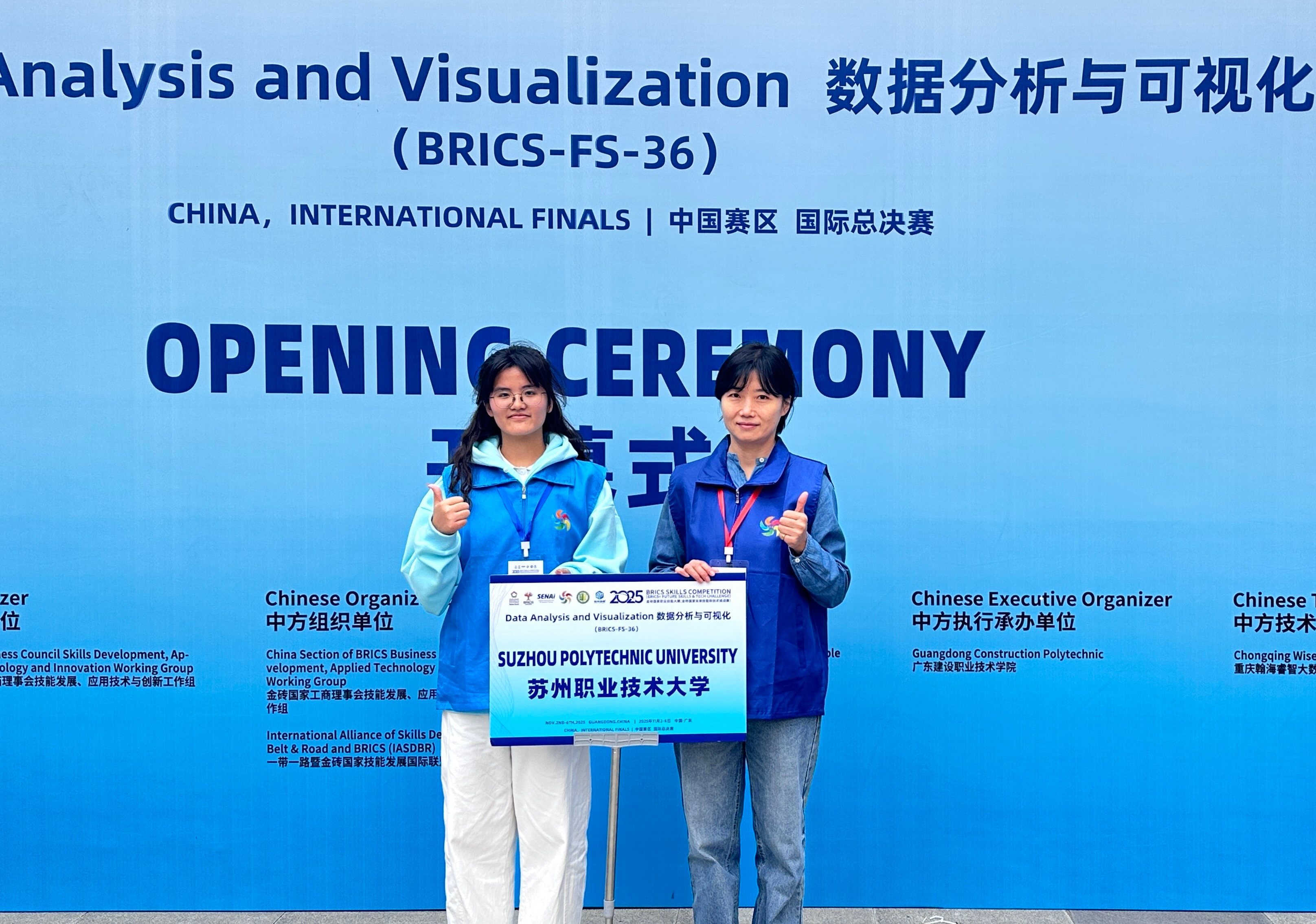 11月5日,2025年金砖国家职业技能大赛数据分析与可视化赛项中国赛区国际总决赛在广东建设职业技术学院举行。我校计算机工程学院23大数据技术1班王丽丽同学在大数据技术专业主任陈珂老师的指导下,与来自中国、俄罗斯、印度、南非、新加坡等9个国家的58支外籍队伍和79支国内队伍同台竞技,在国际总决赛中取得二等奖的优异成绩。