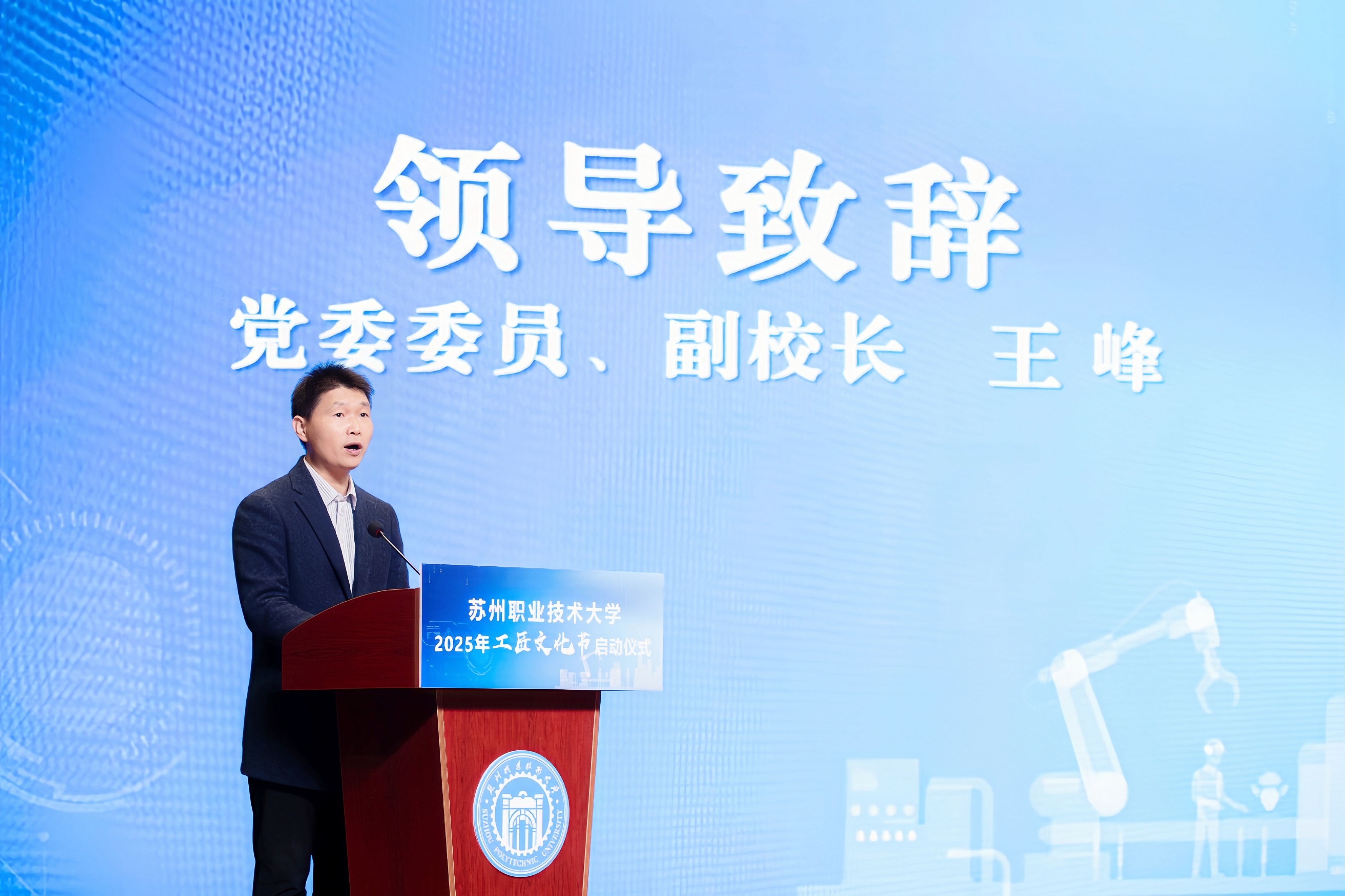 王峰在致辞中向全体师生致以诚挚问候,并对在各类技能赛事中取得优异成绩的师生表示祝贺。他指出,职业教育肩负着培养高素质技术技能人才的重要使命,希望同学们坚定走技能成才、技能报国之路,以技能铸就底气,用实干担当使命,在工匠文化节的实践平台上锤炼技艺、勇于创新、追求卓越。