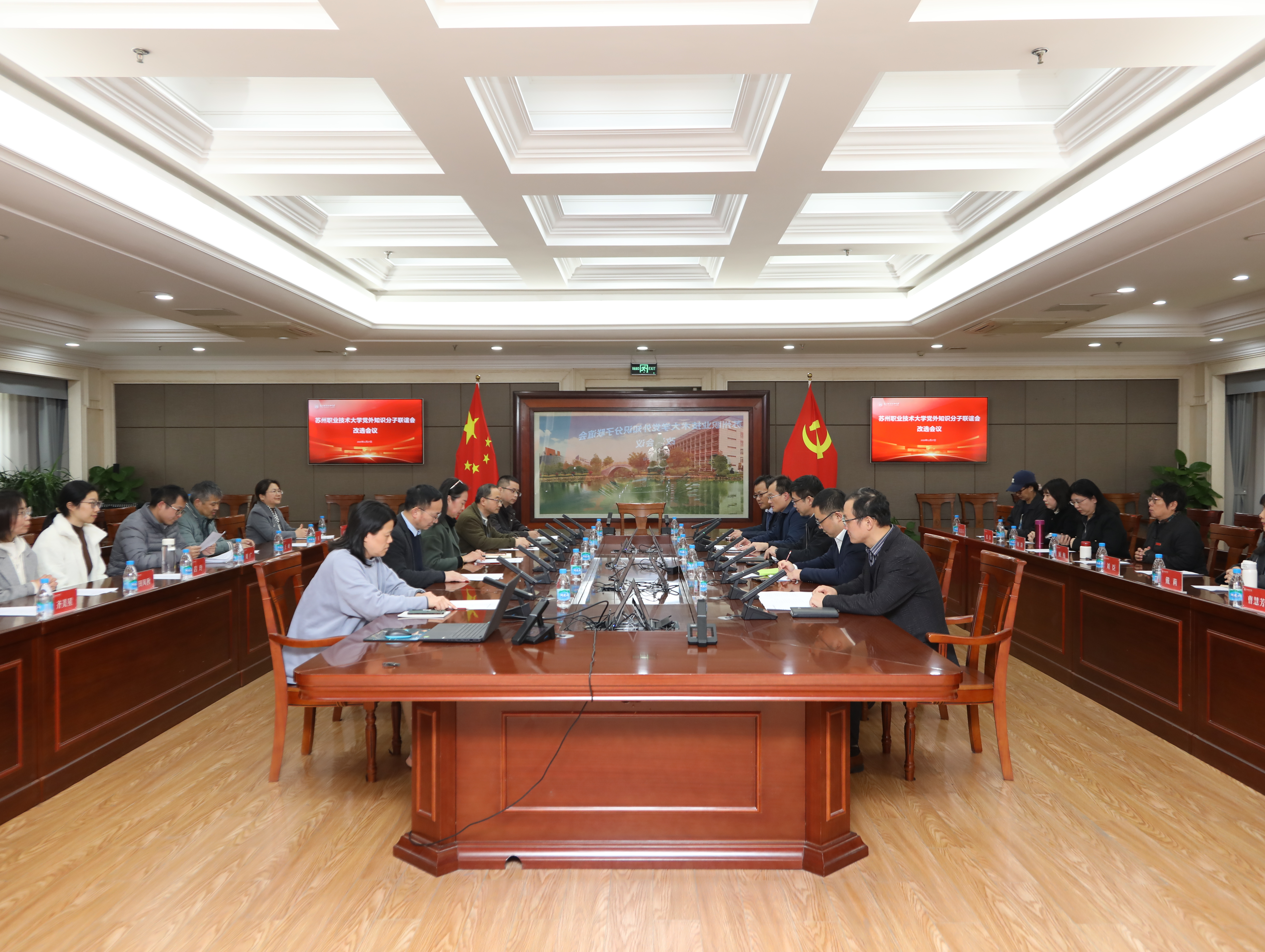 11月27日下午,我校在惠和楼215会议室举行苏州市职业大学党外知识分子联谊会改选会议。市委统战部无党派人士和党外知识分子工作处副处长吴震,校党委副书记、校长陈峻,校党委统战部、知联会全体成员参加会议。会议由党委委员、党委统战部部长叶军主持。