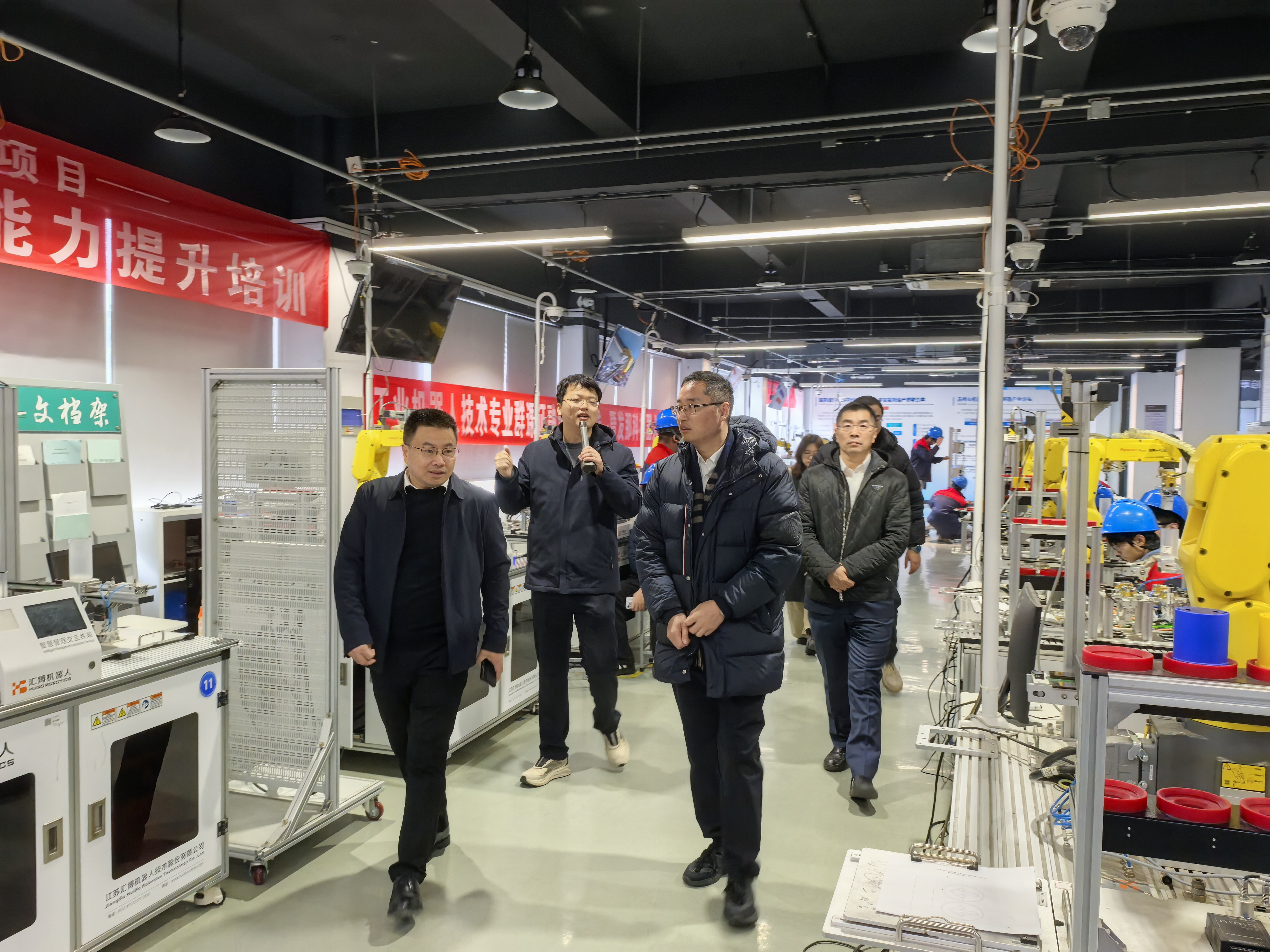 座谈会前,陈海祥一行实地考察了学校智能制造共享创新服务平台、数字化设计与制造技术训练中心,深入了解学校在产教融合平台建设、校企协同育人等方面的实践与成果。