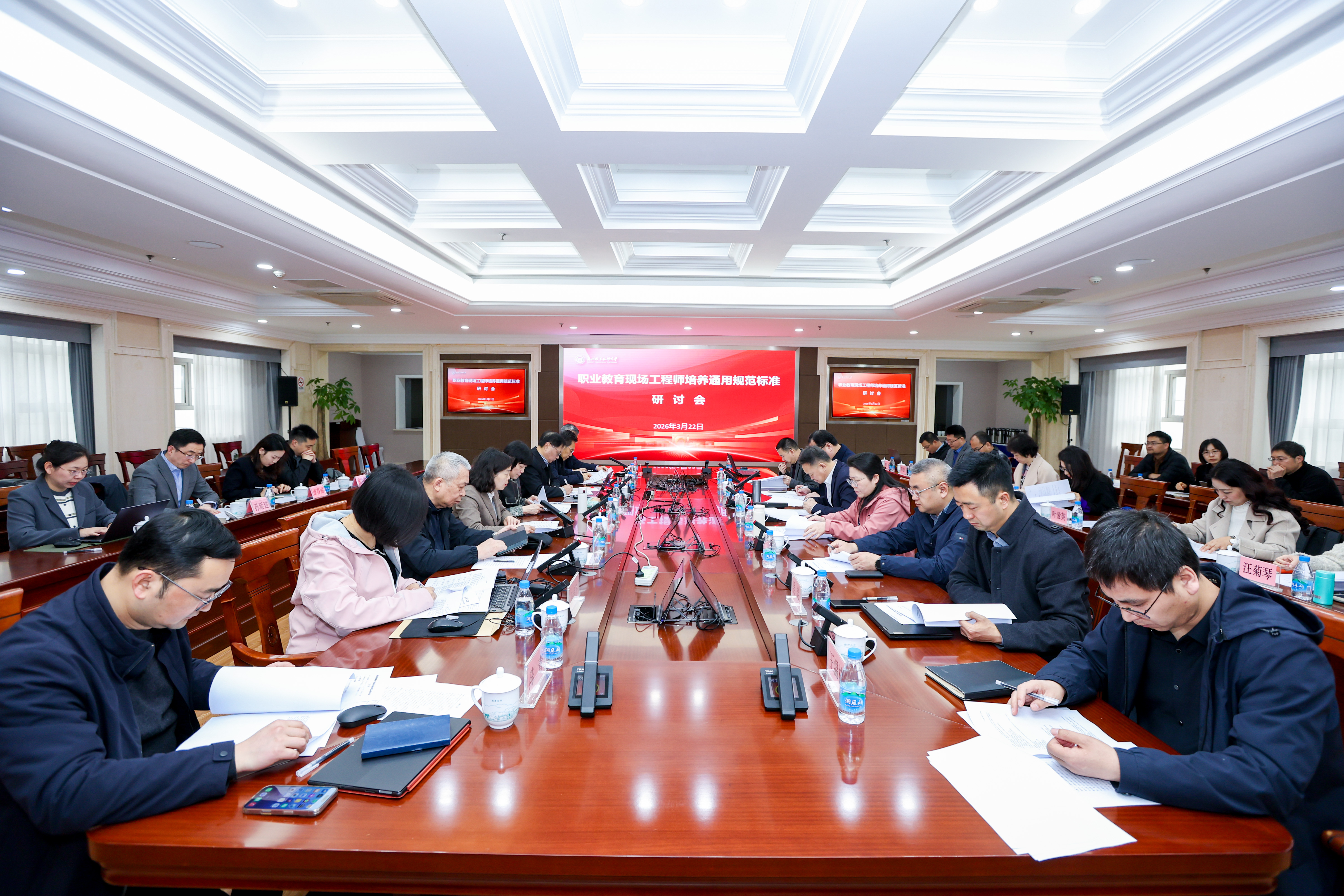 3月22日,职业教育现场工程师培养通用规范标准研讨会在我校顺利召开。本次研讨会聚焦深化现代职业教育体系建设改革,共商现场工程师培养的标准化、规范化建设。北京教育科学研究院职业教育研究所所长霍丽娟,中国特色学徒制教学指导委员会主任委员赵鹏飞,中国通信学会工程能力评价与促进中心主任吴卓平,我校党委书记温贻芳、副校长孙学文等领导出席会议。来自中国标准化专家委员会、江苏省职业教育行业指导委员会等机构及全国十余所职业院校的30多位专家学者参加研讨。