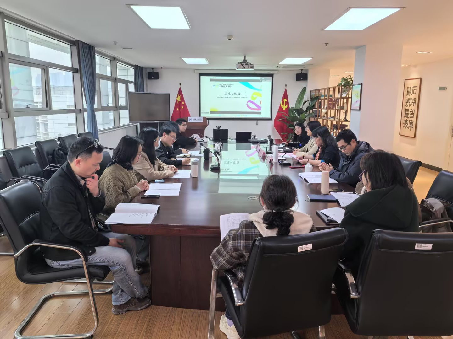 3月24日下午,2026年江苏省职业院校技能大赛高职组“融媒体内容策划与制作”赛项线上说明会在惠和楼召开。校党委委员、纪委书记庄剑英出席,赛项专家组、技术支持企业代表及各参赛院校师生线上参会,教育与人文学院相关负责人及网络新闻与传播专业教师列席会议。会议由教育与人文学院副院长(主持工作)陈璇主持。