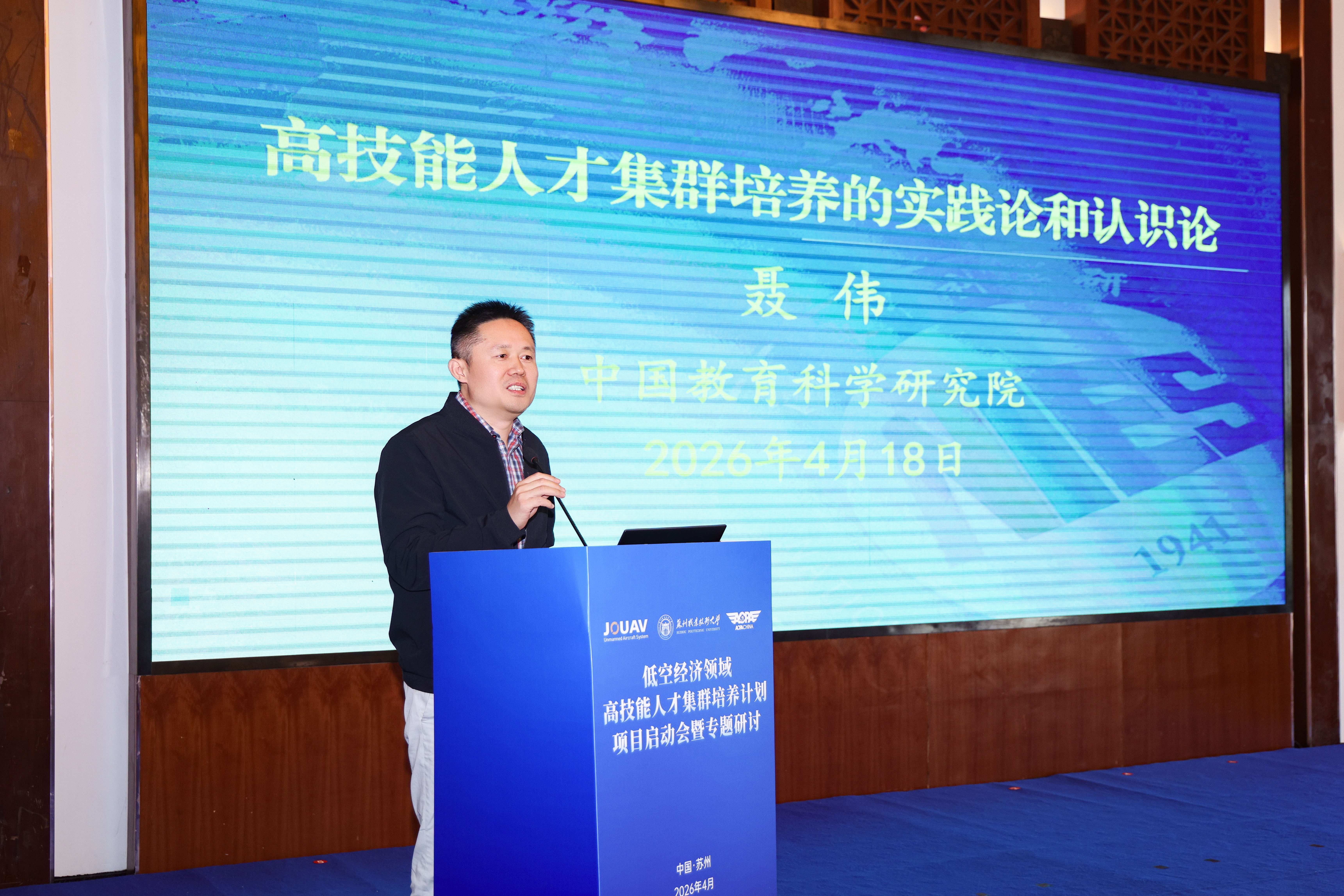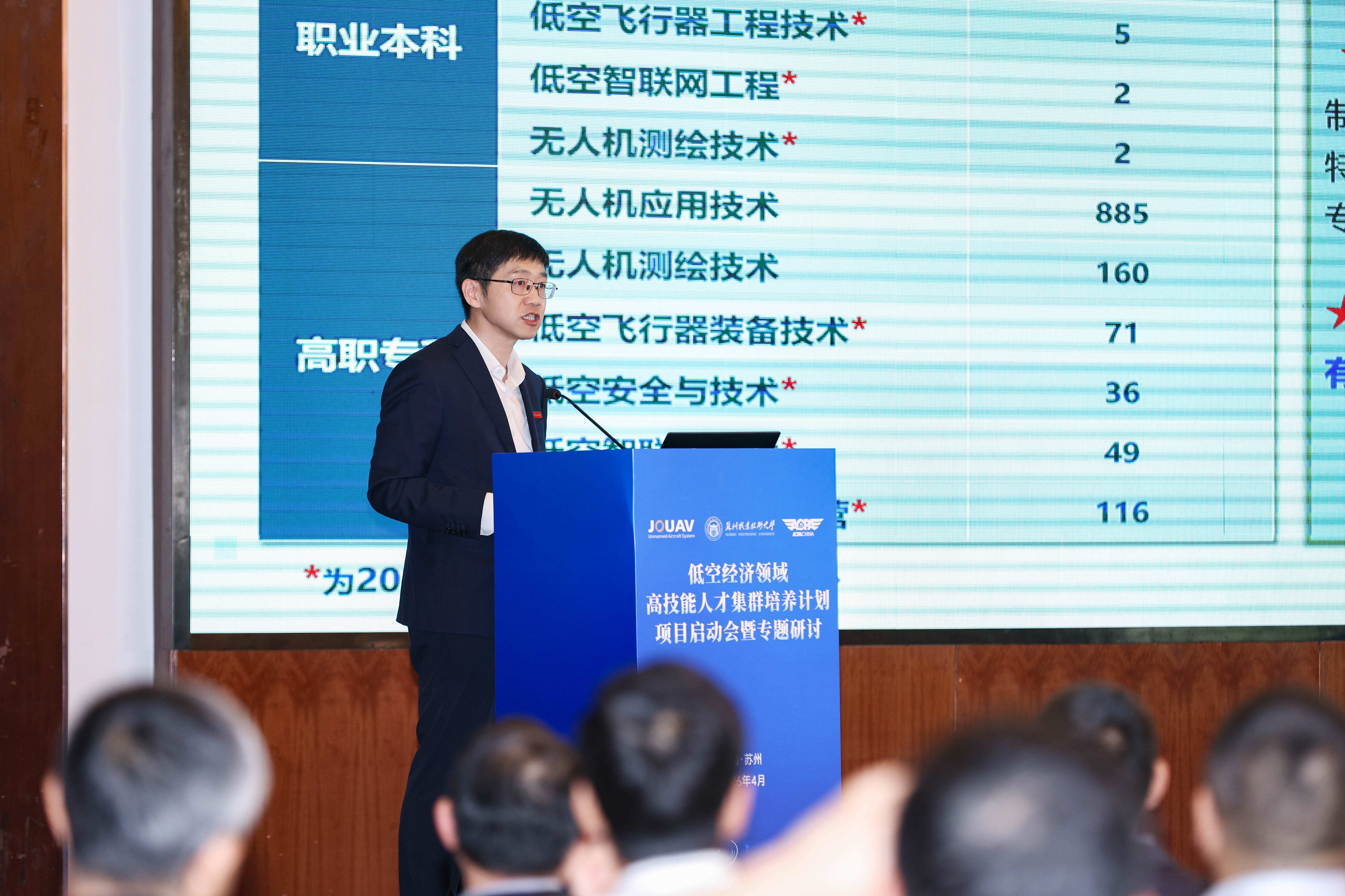 江苏省教育厅副厅长、党组成员吴昊,职业教育处处长马万全,苏州市政府副秘书长吴旭翔,教育局副局长严志,中国教育科学研究院职业教育与继续教育研究所副研究员聂伟,欧洲科学院院士、世界无人机大会主席杨金才,成都纵横自动化技术股份有限公司董事长任斌,中国航空器拥有者及驾驶员协会执行秘书长丁邦昕,以及来自全国10所“双高计划”建设院校、科研院所、行业组织和领军企业的领导、专家与嘉宾齐聚一堂,围绕低空经济高技能人才培养新路径、新机制进行深入研讨,共筑产教融合人才培养新高地。