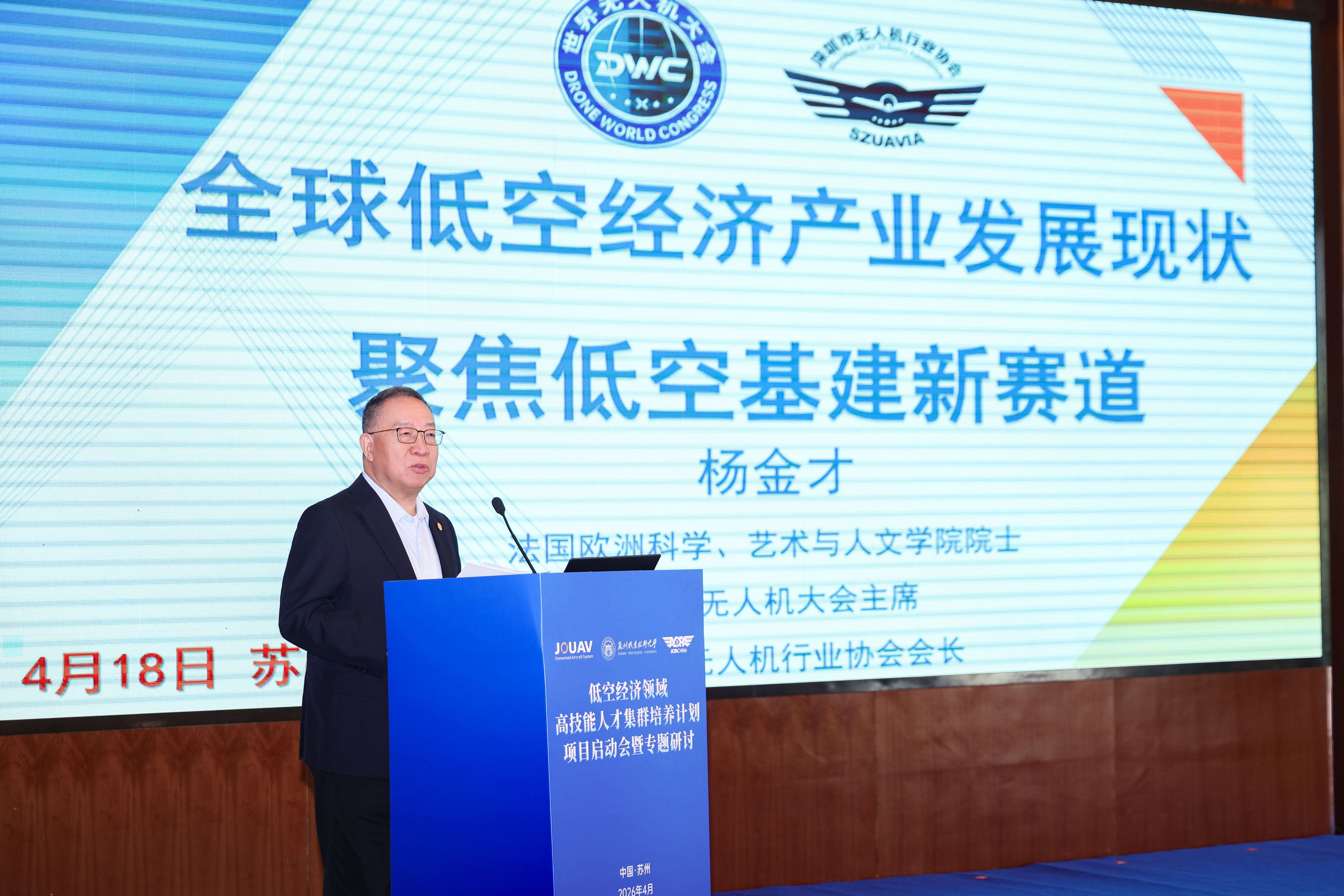 法国欧洲科学院院士、世界无人机大会主席杨金才作《全球低空经济产业发展现状:聚焦低空基建新赛道》报告。