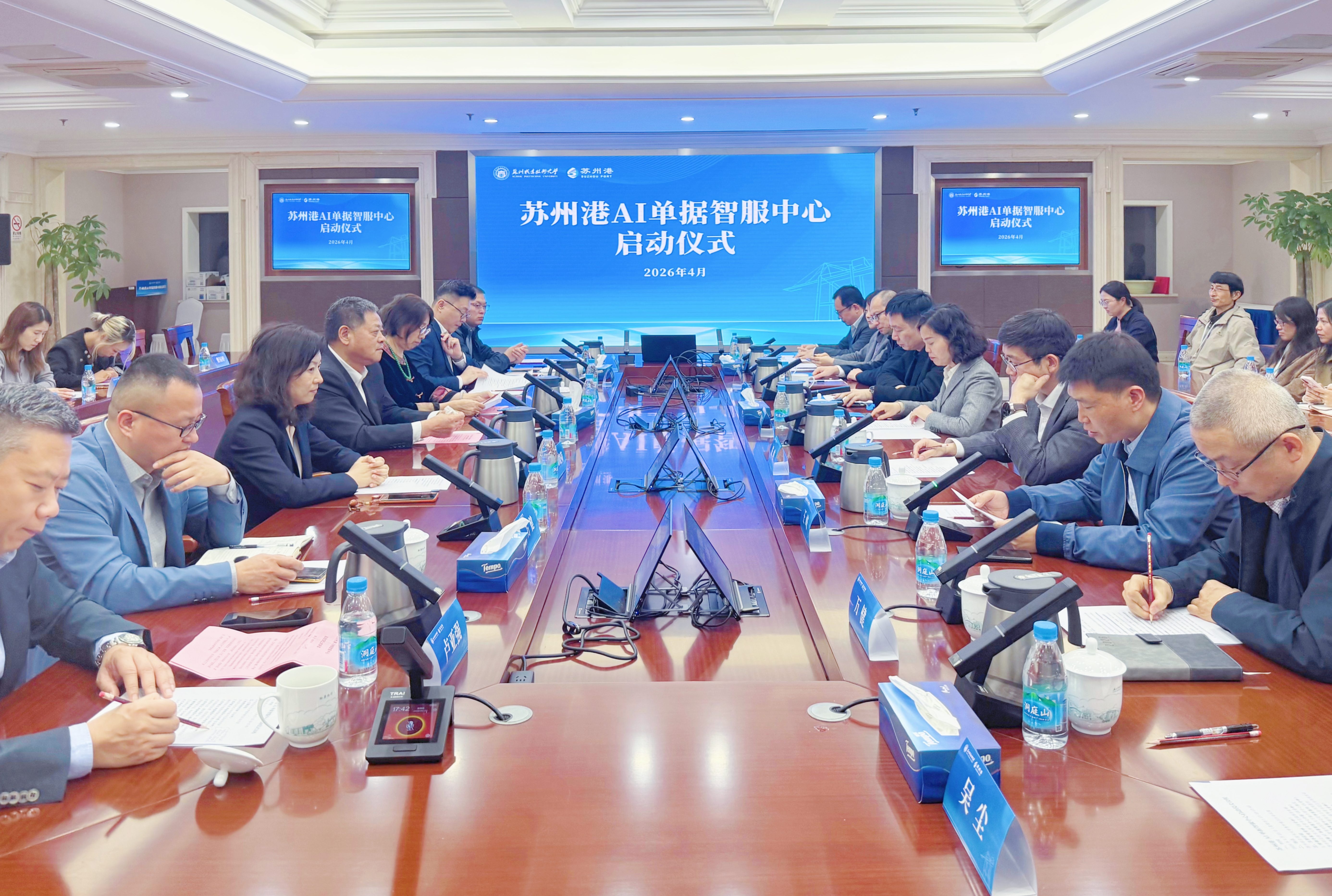 4月23日下午,苏州港AI单据智服中心启动仪式在我校惠和楼举行。本次活动由苏州港管委会与我校联合主办,标志着政校企三方在人工智能赋能港口物流领域迈出实质性步伐。