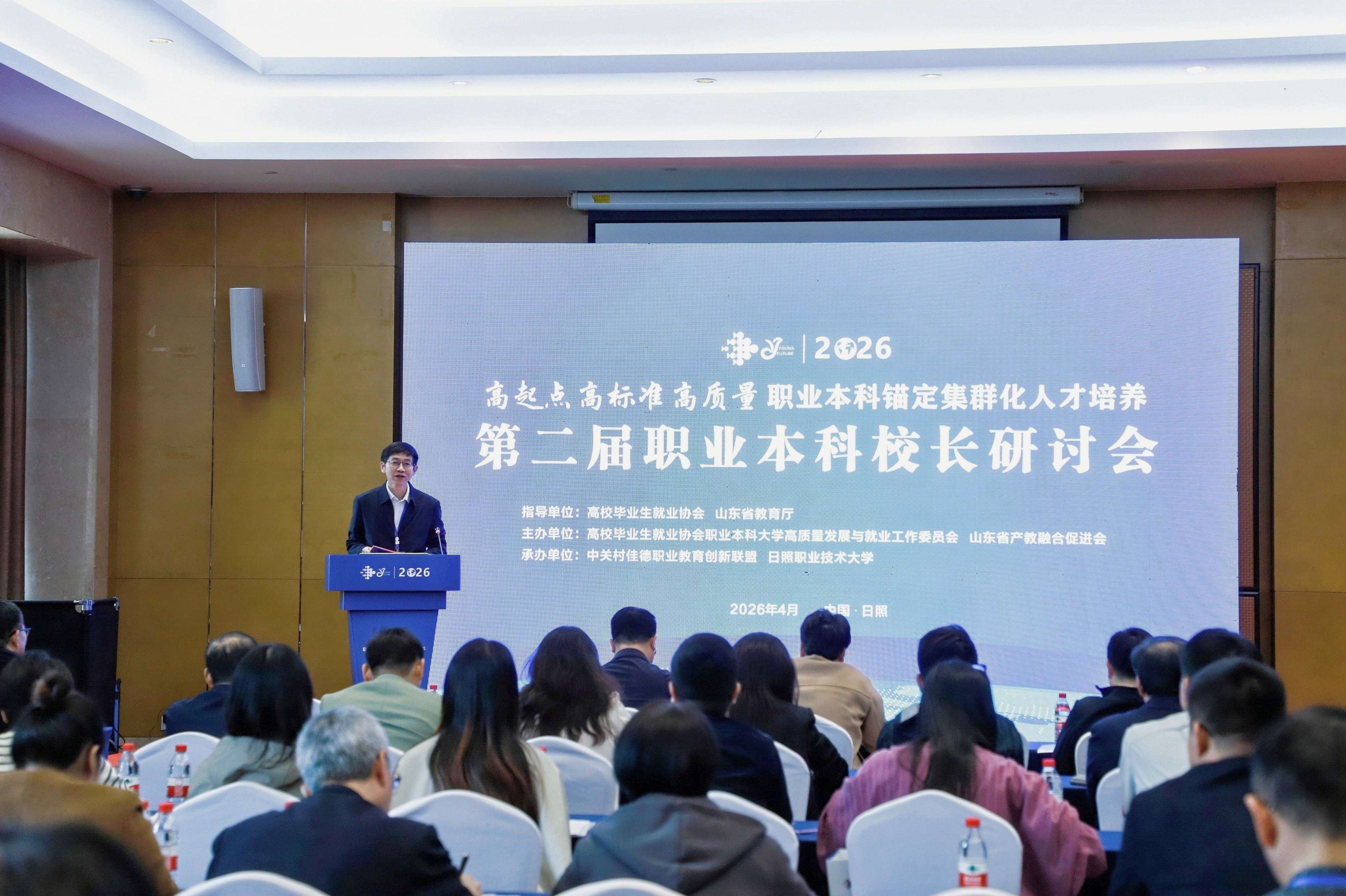 4月25日,第二届职业本科校长研讨会在山东日照举行。全国政协常委、教育部原副部长孙尧,山东省有关部门领导,高校毕业生就业协会相关负责人,以及来自全国职业本科院校、高职院校、行业组织和头部企业的代表参加会议。会议聚焦“高起点·高标准·高质量,职业本科锚定新兴产业”,围绕低空经济、具身智能、高端装备、城市更新等新兴产业人才需求与职业本科高质量发展开展深入研讨。