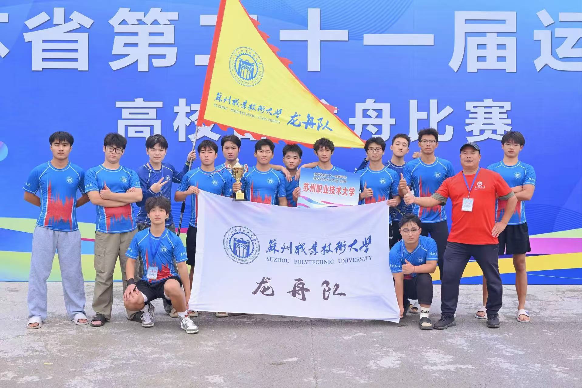 近日,江苏省第二十一届运动会高校部龙舟比赛在连云港顺利落幕。我校龙舟队在与来自全省包括南京大学、东南大学在内21所高校的525名运动员和教练员同场竞技中发挥出色,最终夺得男子500米第三名、男子团体第三名、综合团体第四名以及男子200米第四名的优异成绩,为学校赢得了荣誉。