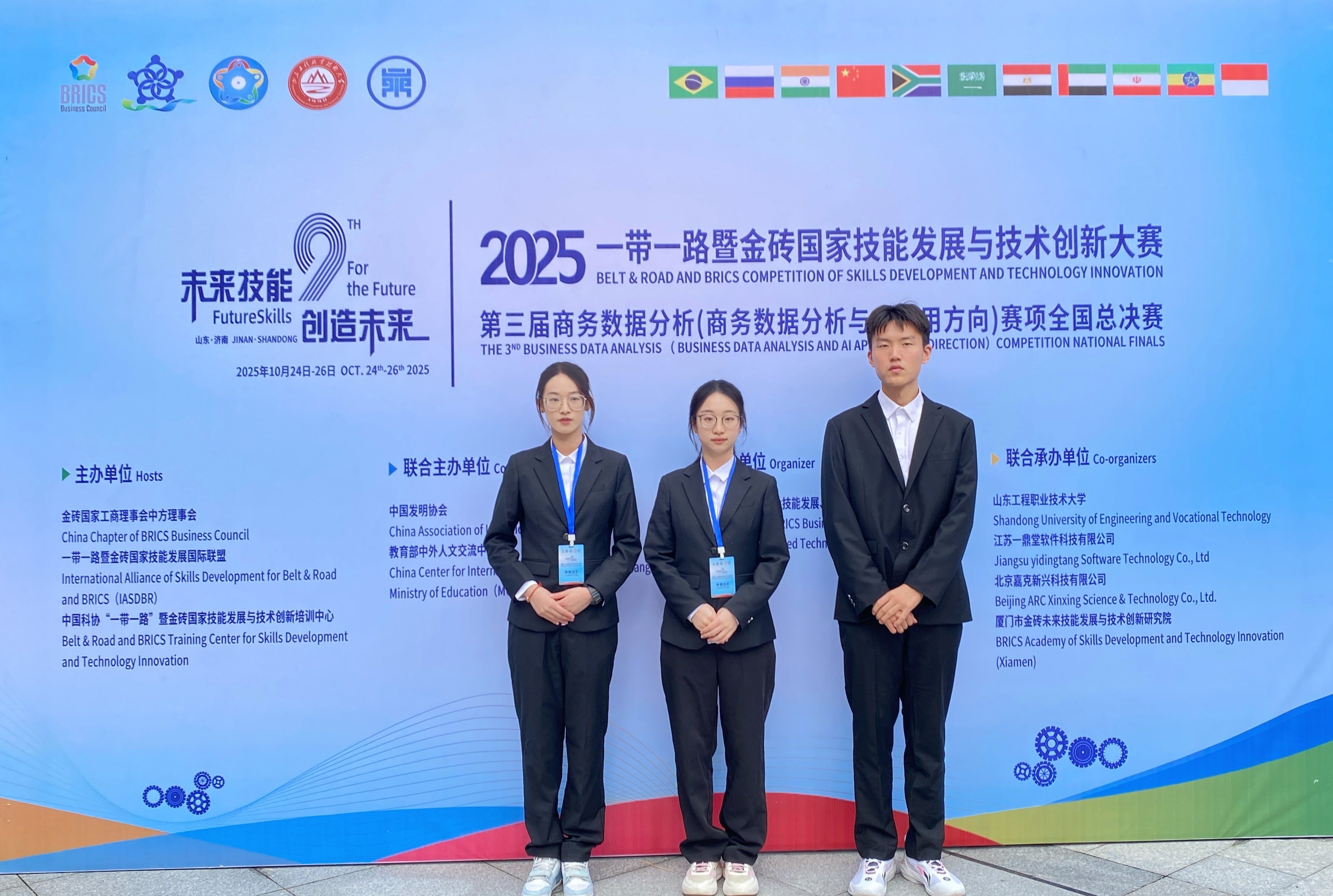 10月25日,我校商学院师生团队在“一带一路”暨金砖国家技能发展与技术创新大赛“商务数据分析与AI应用”赛项全国总决赛中荣获三等奖。这是商学院继2023年全国职业院校技能大赛商务数据分析赛项获奖后,再次在该领域斩获国家级奖项。