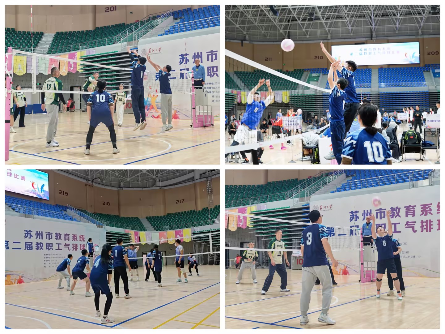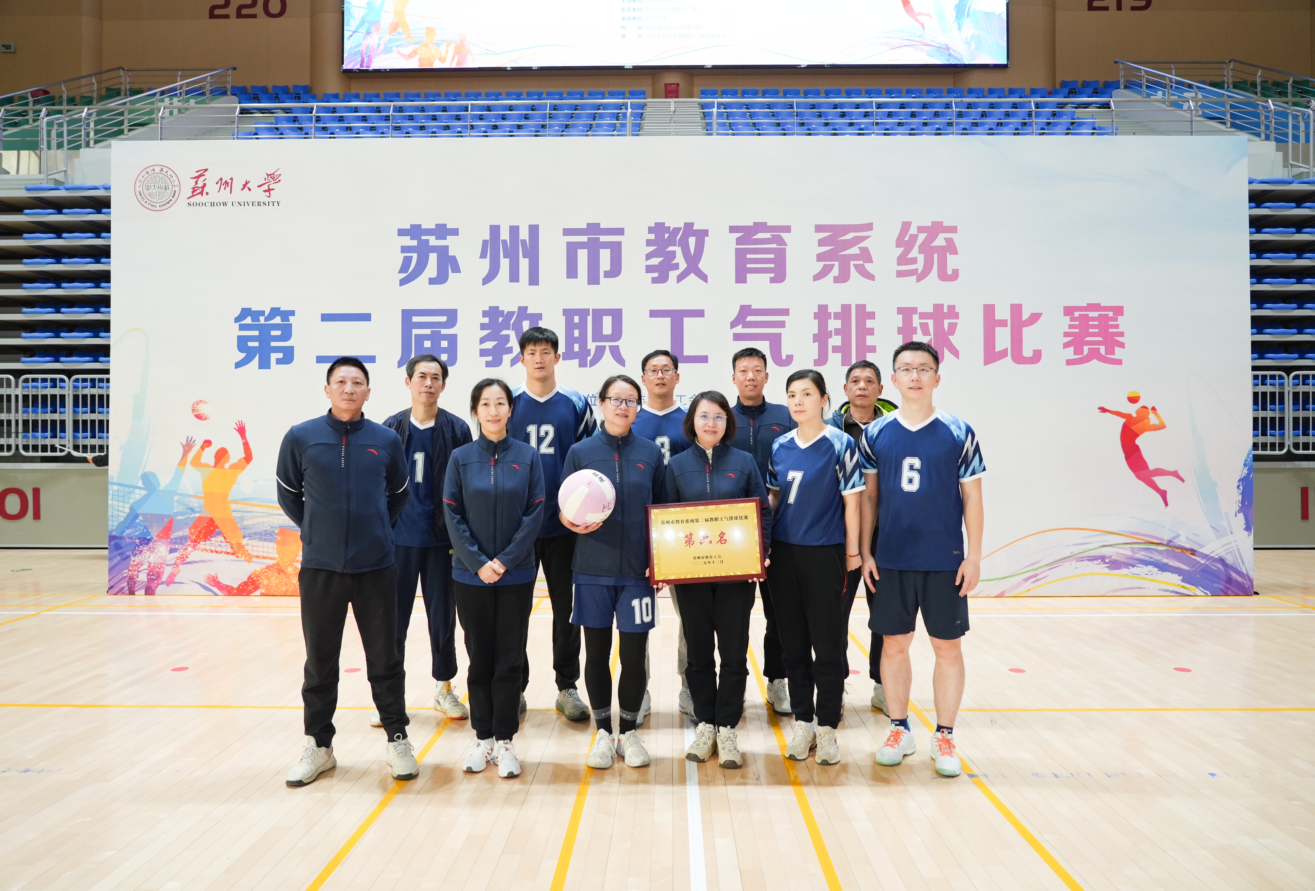 12月13日至14日,苏州市教育系统第二届教职工气排球比赛在苏州大学独墅湖校区文体中心举行。本次比赛由苏州市教育工会主办,苏州大学工会承办,10个县级市(区)教育工会、20家直属工会及市教育局机关共31支代表队,400多名教职工运动员参加比赛。我校教职工气排球队凭借出色的团队协作与顽强的拼搏精神,荣获直属工会组第六名的优异成绩。